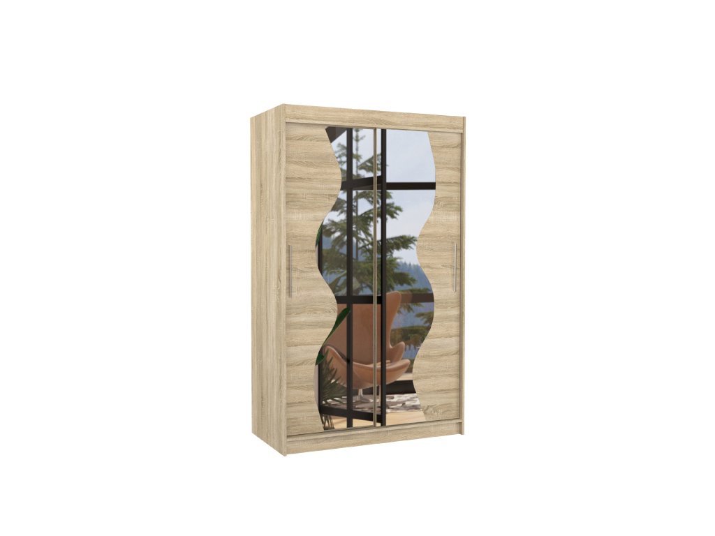 Posuvná skříň se zrcadlem OSWALD je ideálním způsobem, jak uspořádat prostor. Nábytek je vybaven prostornými policemi a tyčí, na kterou můžete pověsit šaty, obleky, svrchní oděvy nebo košile. Na přední straně jsou připevněna zrcadla ve tvaru vlny, která opticky zvětšují prostor a zároveň dodávají jedinečný styl. Díky tomu, že je skříň posuvná, nemusíte vyhrazovat další místo na otevírání dveří, což z ní činí skvělé řešení pro malý pokoj nebo úzkou předsíň. Zajímavým prvkem je efektní LED osvětlení, které dodává skříni i místnosti nádherný půvab.Doplňkové parametry