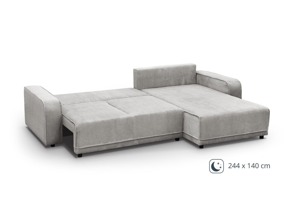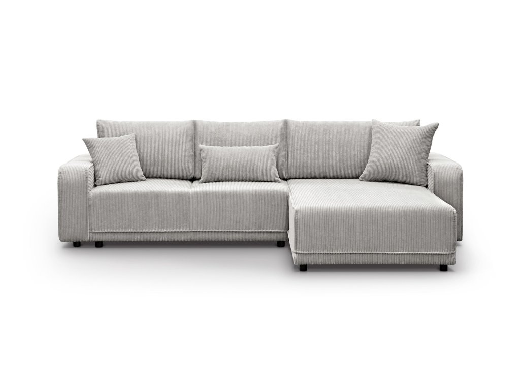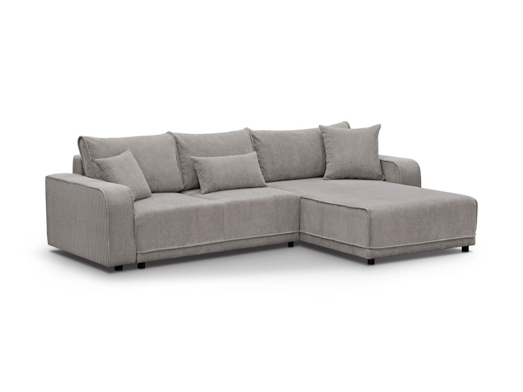 Model je čalouněný v šedé látce, která se snadno kombinuje s různými interiérovými styly. Pravá orientace pohovky umožňuje optimální využití prostoru v obývacím pokoji.
