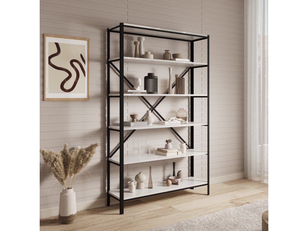 Regál Ralph je elegantní a moderní nábytek, který spojuje funkčnost s minimalistickým designem. Vyznačuje se černou kovovou konstrukcí s výraznými geometrickými liniemi a policemi v různých barvách, které mu dávají industriální, a zároveň stylový charakter.Doplňkové parametry