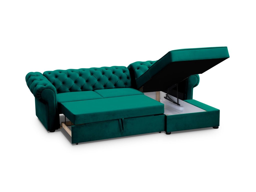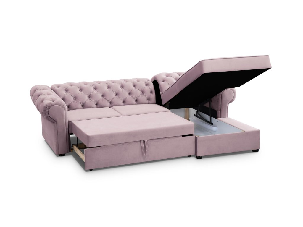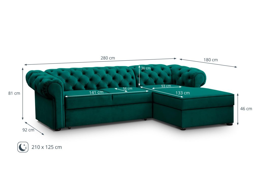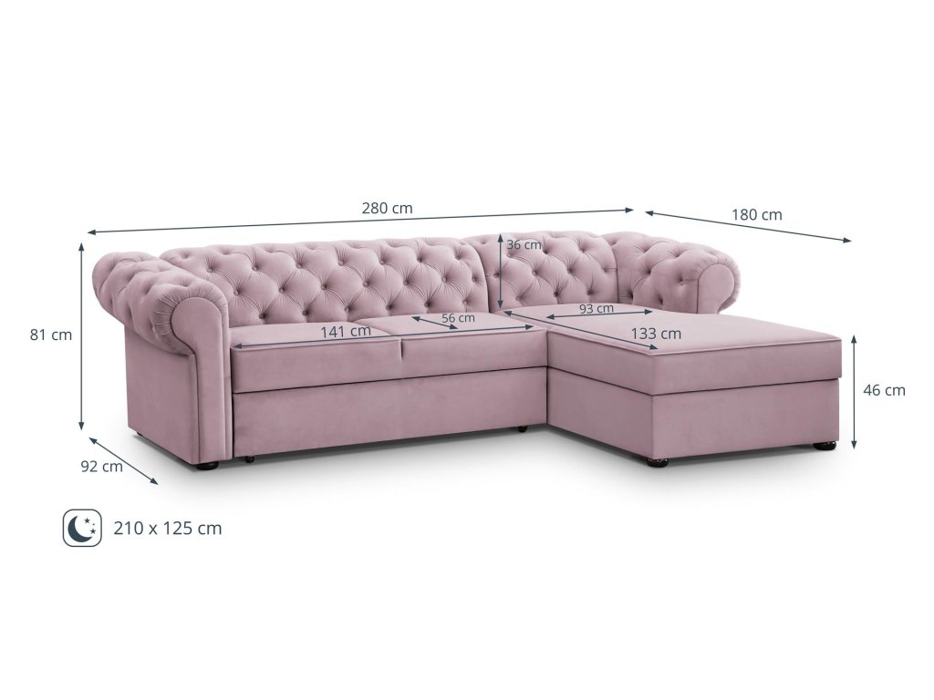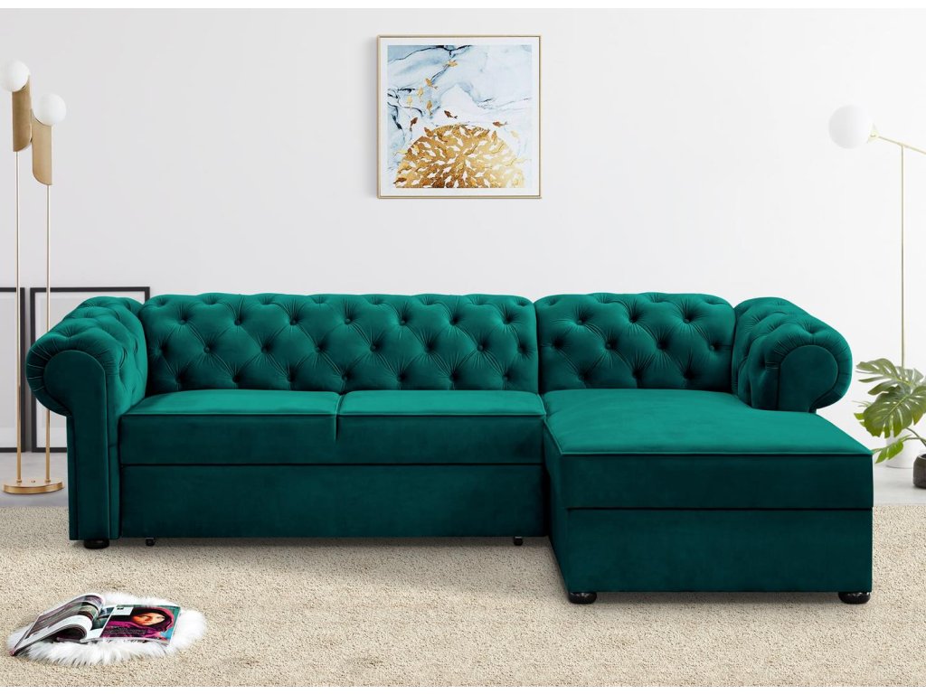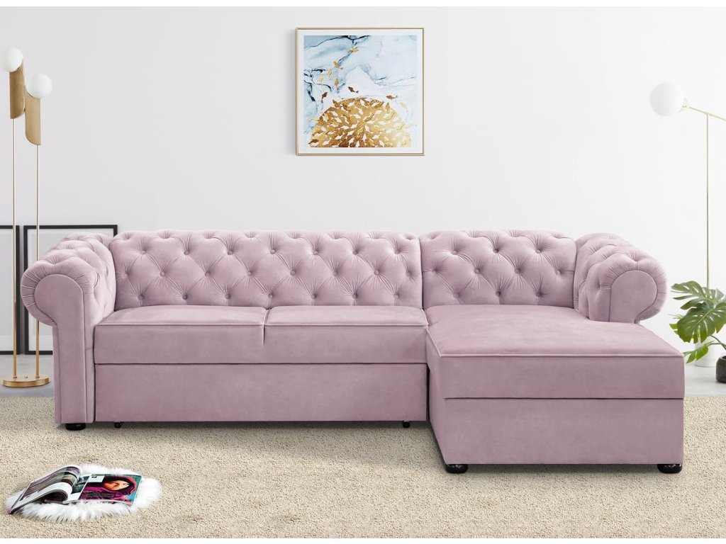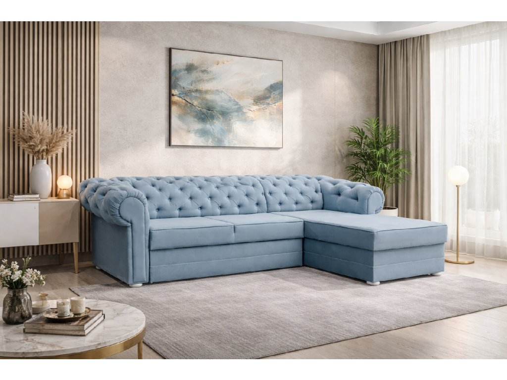 Rohová sedací souprava VALENTINO s funkcí spaní a úložným prostorem je ideální volbou pro ty, kteří hledají elegantní, pohodlnou a praktickou sedačku do obývacího pokoje. Díky rozkládací funkci nabízí prostor pro příležitostné spaní, zatímco úložný prostor poskytuje místo pro lůžkoviny. Luxusní design ve stylu Chesterfield s typickým prošíváním dodává interiéru nadčasový a reprezentativní vzhled.