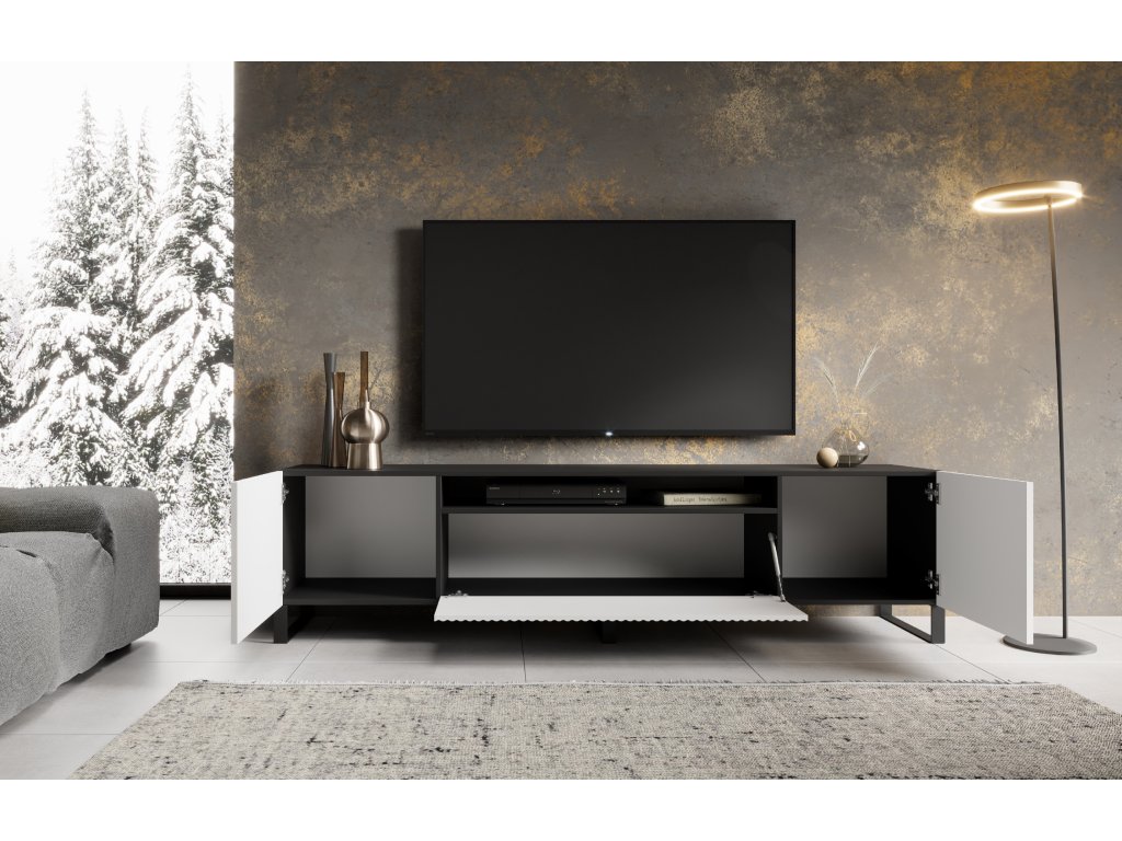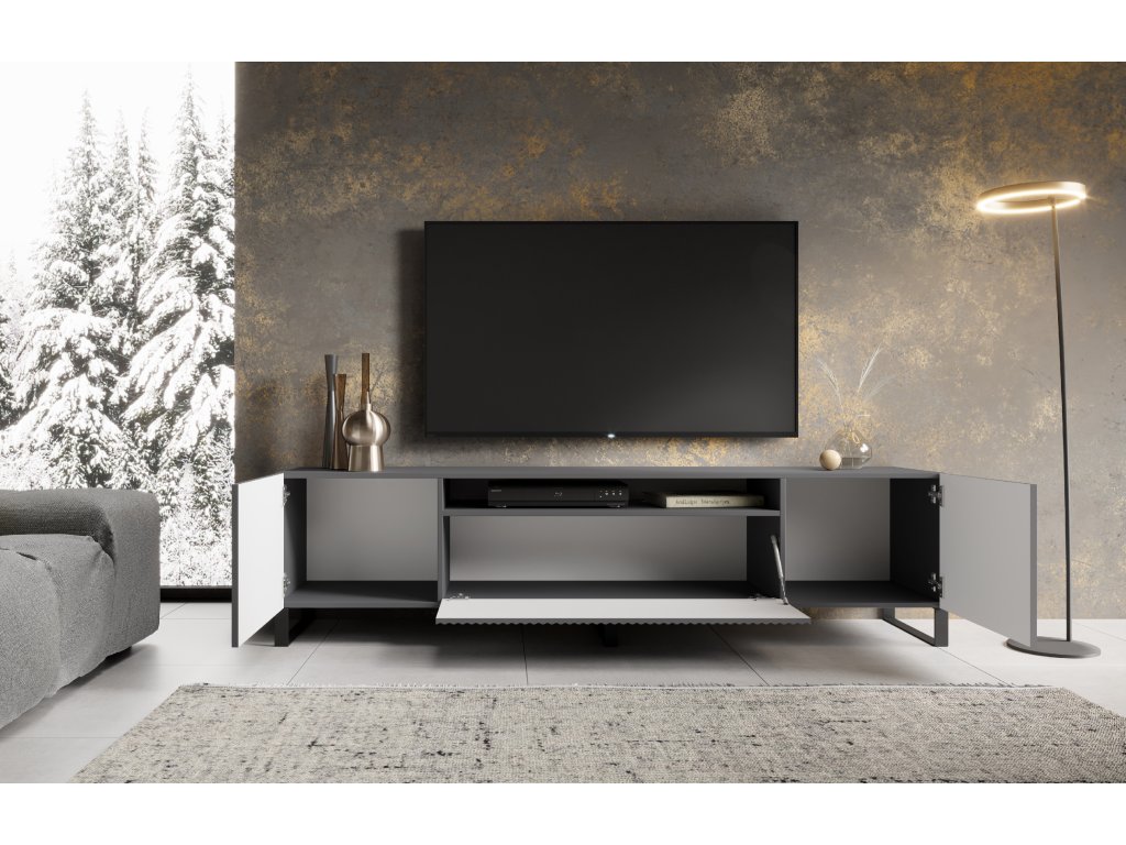 Noemi RTV je moderní, elegantní a funkční skříňka pod televizor, ideální pro použití v moderních interiérech. Její jedinečnou vlastností je rýhovaný povrch, který nábytku dodává charakter a texturu. Skříňka byla navržena tak, aby obsahovala dostatečné množství přihrádek a polic pro umístění různých elektronických zařízení včetně televizoru, set-top boxu, herní konzole a mnoha dalších.Doplňkové parametry