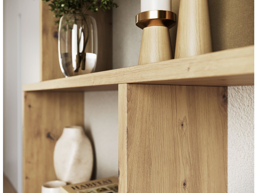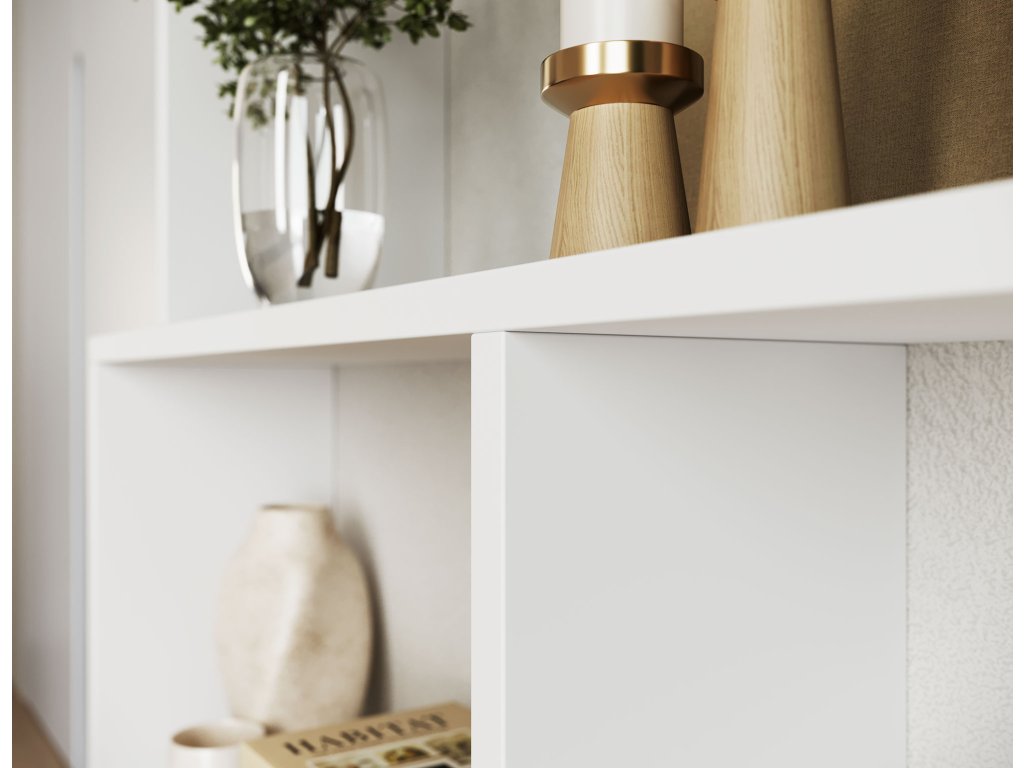 Regál Shellf je moderní nábytek, který se skvěle hodí do každého interiéru a nabízí praktický úložný prostor. Má šířku 80 cm, výšku 180 cm a hloubku 20 cm, což z něj dělá ideální volbu do obývacího pokoje nebo kanceláře. Zásuvka s maximálním zatížením 3 kg umožňuje pohodlné uložení drobných předmětů, zatímco černé plastové kluzáky zajišťují stabilitu a chrání podlahu před poškrábáním.Doplňkové parametry