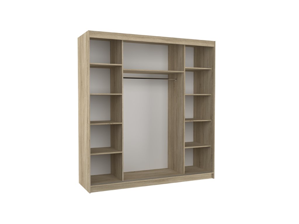 Posuvná šatní skříň PERQS se zrcadlem představuje dokonalý způsob, jak uspořádat svůj prostor. Nábytek je vybaven prostornými policemi a tyčí, na kterou můžete zavěsit šaty, obleky, svrchní oblečení nebo košile. Na přední straně jsou připevněna zrcadla, která opticky zvětšují prostor. Díky tomu, že je skříň posuvná, nemusíte pro otevírání dveří vyčlenit další prostor, což z ní činí ideální řešení pro malé místnosti nebo úzké chodby.Doplňkové parametry
