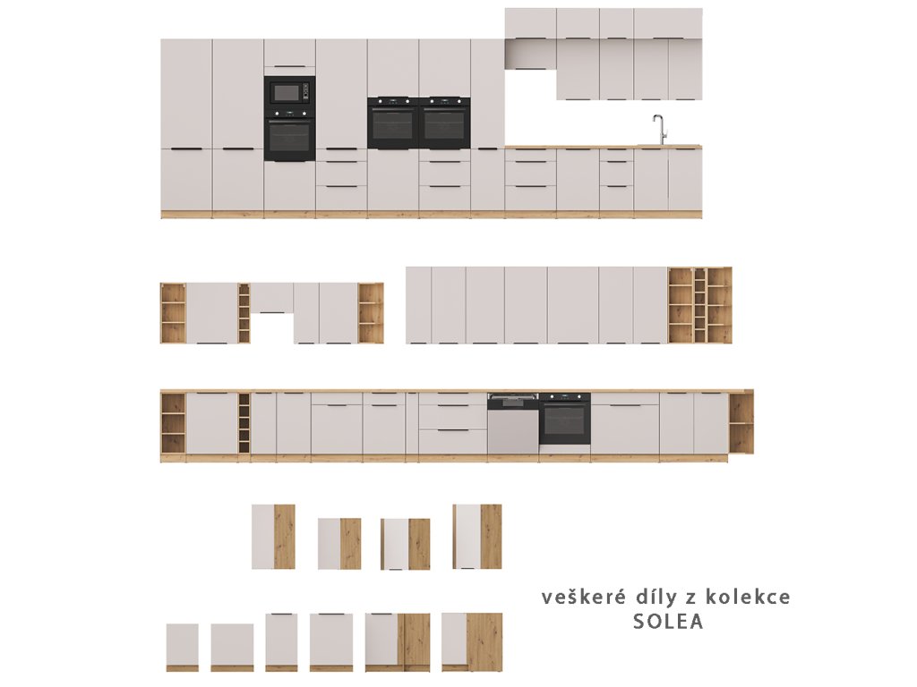 Kuchyň SOLEA 260 cm promění vaši domácnost v prostor, kde se setkává funkčnost s pohodou a stylovým designem. Každý detail, od plynulého dovírání šuplíků po elegantní dekor, je navržen tak, aby vaření a každodenní život byly radostí. Kombinací s dalšími prvky kolekce vytvoříte prostor, který je nejen praktický, ale i inspirativní.