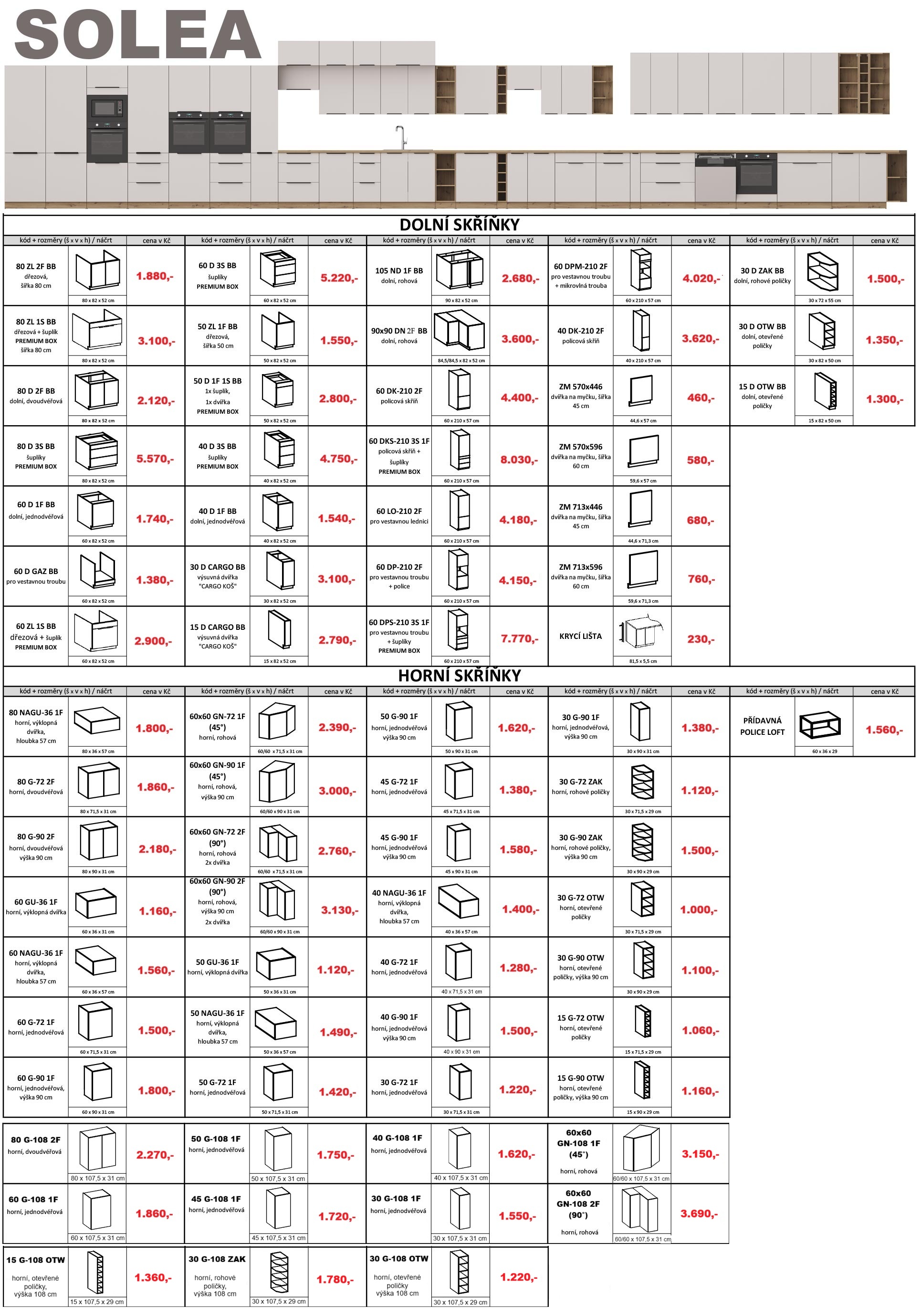 Užijte si pohodlí při každodenním vaření díky tichému dovírání dvířek, kvalitním zásuvkám PREMIUM BOX a promyšlenému rozložení úložného prostoru. Kuchyňská linka SOLEA nabízí variabilní sestavu, kterou snadno přizpůsobíte svým potřebám i velikosti prostoru.