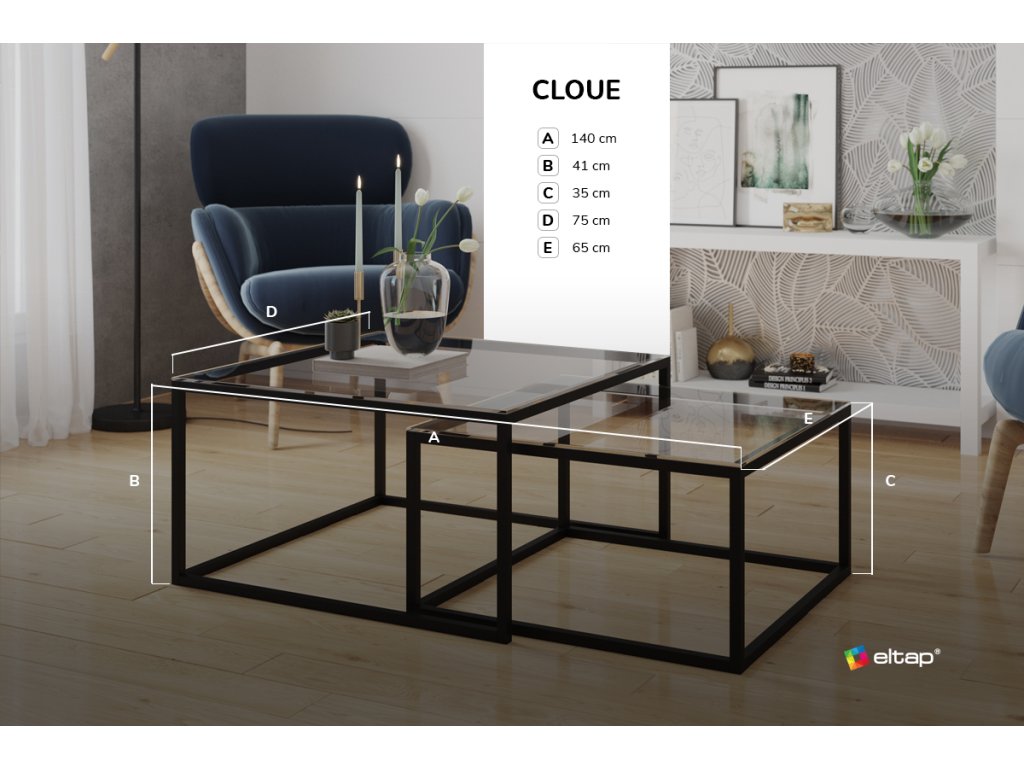Konferenční stolek Cloue je zajímavý a originální dvouúrovňový model o rozměrech 75/65 × 75/65 × 41/35 cm, který zaujme nejen svým jednoduchým tvarem, ale i netradičním designem. Tento kus nábytku je ideálním řešením pro milovníky industriálního stylu, avšak skvěle zapadne i do moderních nebo minimalistických interiérů.