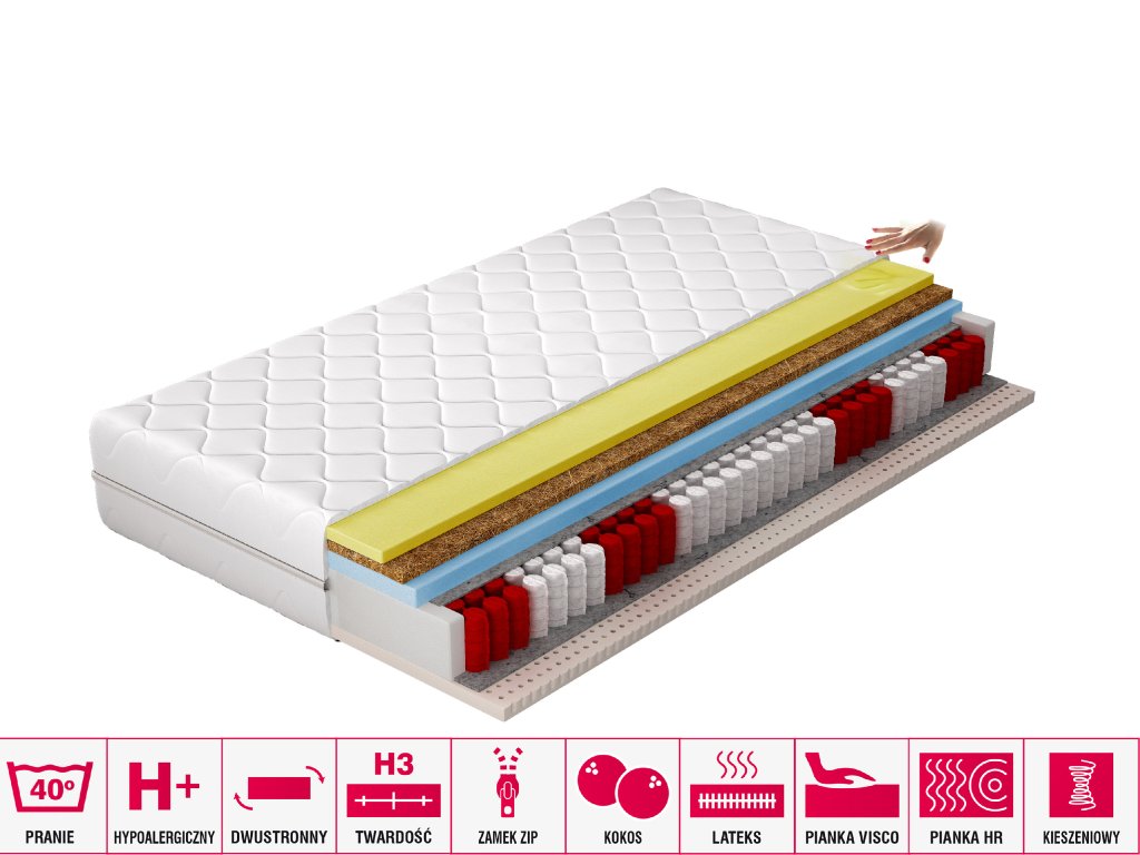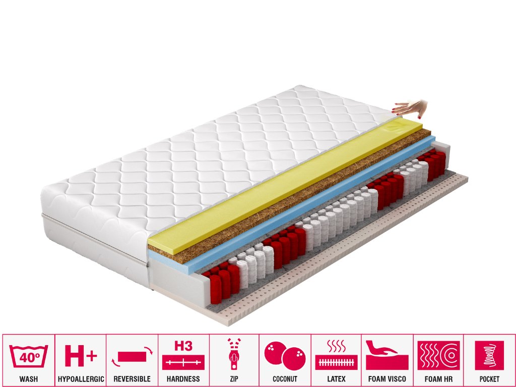 Komfortní spánek je klíčem k úspěšnému dni, a proto víme, jak důležité je přizpůsobit matraci individuálním potřebám. Termoelastická matrace Sola je ideálním řešením pro ty, kteří hledají maximální pohodlí a funkčnost. Jádro tvoří kapsová pružina, která eliminuje vlnění a přenos pohybu, a tři různé pěny: z jedné strany latexová pěna, z druhé HR pěna a visco pěna, oddělené kokosovou deskou, která zvyšuje tuhost matrace. Vše je uzavřeno ve snímatelném potahu, jenž doplňuje komplexní konstrukci matrace Sola a přispívá ke klidnému spánku.Doplňkové parametry