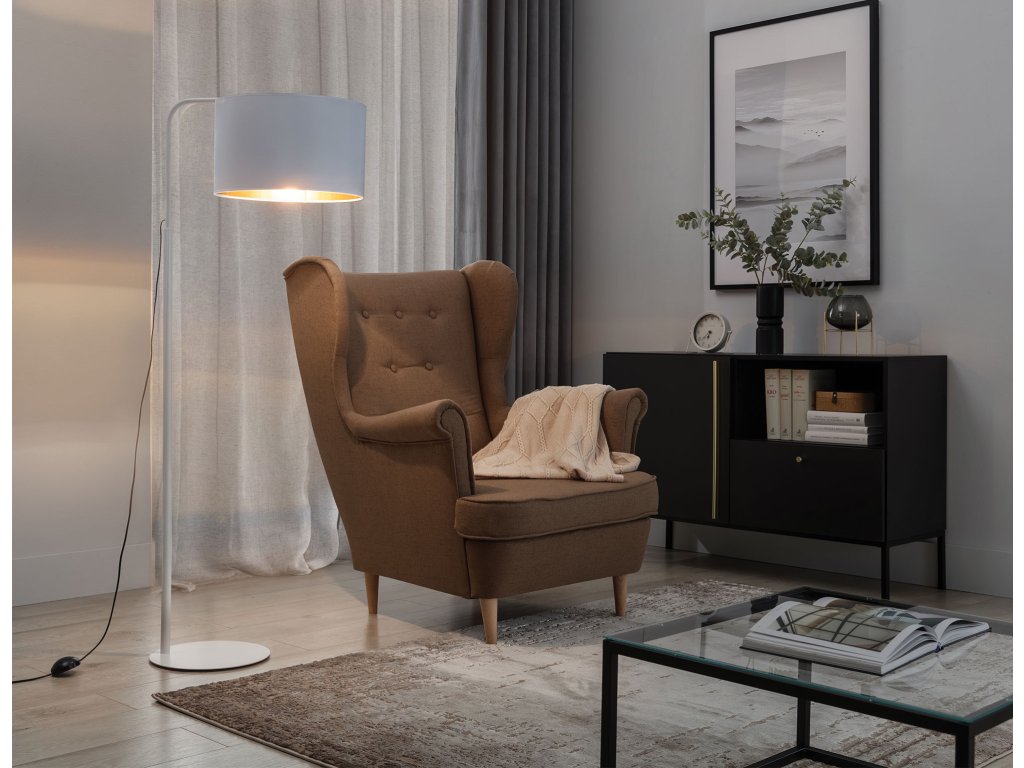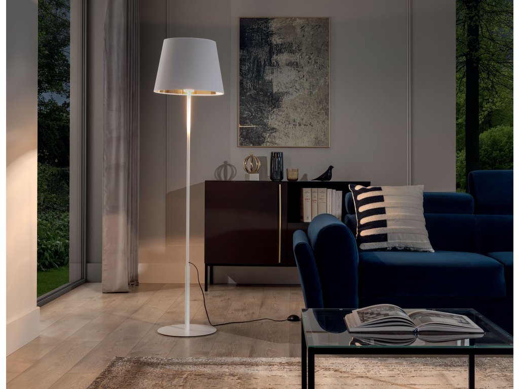 Stojací lampa Vespillo je elegantní a funkční možnost osvětlení, ideální pro různé interiéry. Je vybavena světelným zdrojem s maximálním výkonem 15 W, co zajišťuje příjemné a neoslňující osvětlení. Stínidlo lampy je vyrobeno z látky PVC, co jí dodává moderní a stylový vzhled a umožňuje jemné rozptylování světla, vytvářející útulnou atmosféru. Základna lampy je pevně vyrobena ze oceli, což zaručuje trvanlivost a stabilitu. Lampa má závit E27, co umožňuje snadné přizpůsobení různých žárovek.Doplňkové parametry